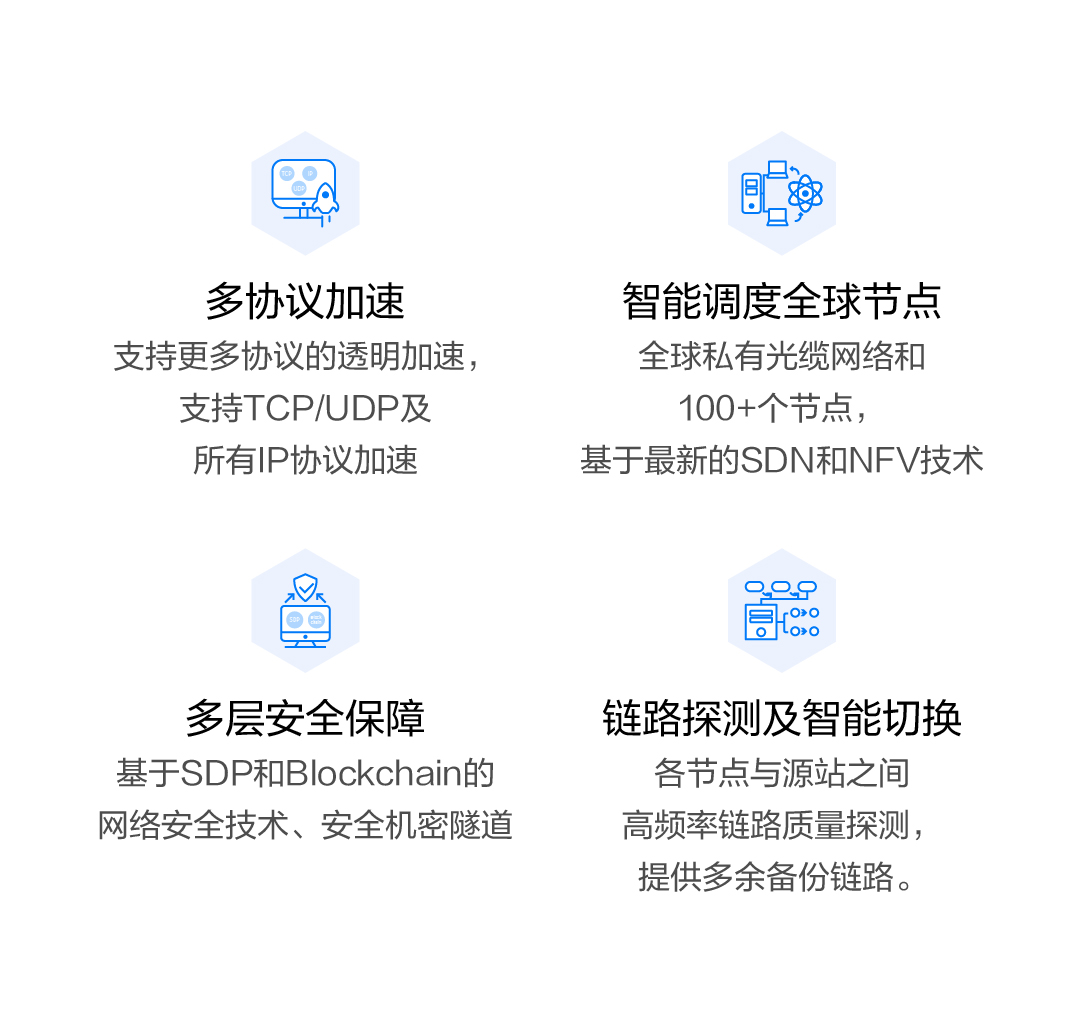 游戏及互联网公司 延迟降低70%,速度提升20倍,文件下载缓存,支持针对协议的深度定制。